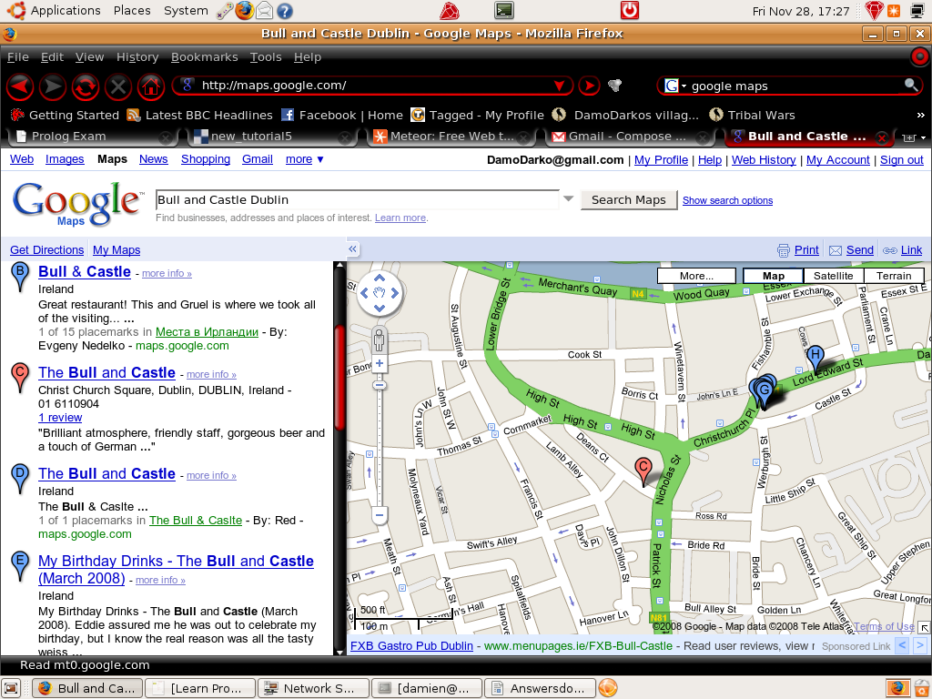 * Downtime * Intersocs meet and greet ** Downtime ** This Monday the 1st there will be a short downtime at 5 till 5.30. So grab a sandwitch take a breather and come back to us :) ** Intersocs Meet and Greet ** We're meeting up with a few other colleges in the Bull and Castle (by christ church) at 9pm tomorrow Saturday the 29th. Its always a good laugh to meet faces behind the names and get a chance to meet new people over a pint, a pack of crisps and a good laid back atmosphere. Well id advise it anyway! (Worst come to worst directions on google maps i.e (C) on the attached screenshot) Thats all for now, back to looking busy dano