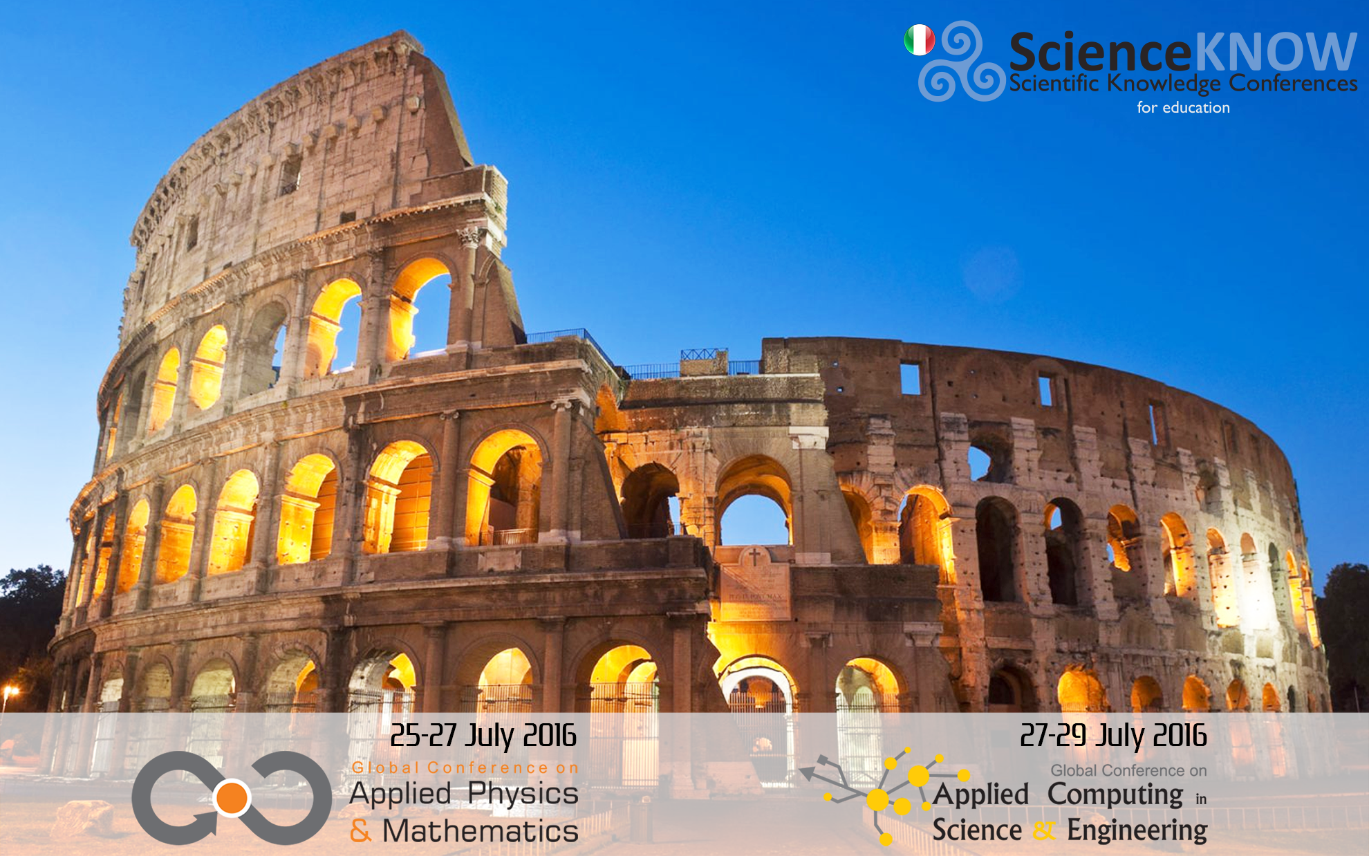 CALL FOR PAPERS Newsletter 5 / Conferences 2016 ROME - ITALY, July 2016 25-27 July 2016 Global Conference on Applied Physics and Mathematics www.physicsmaths.skconferences.com ( http://www.scienceknowconferences.com/index.php/component/acymailing/?subid=28776&ctrl=url&urlid=398&mailid=276 ) * Topics of the congress ( http://www.scienceknowconferences.com/index.php/component/acymailing/?subid=28776&ctrl=url&urlid=399&mailid=276 ) * Click to register and submit abstracts ( http://www.scienceknowconferences.com/index.php/component/acymailing/?subid=28776&ctrl=url&urlid=400&mailid=276 ) * Contact ( http://www.scienceknowconferences.com/index.php/component/acymailing/?subid=28776&ctrl=url&urlid=401&mailid=276 ) 27-29 July 2016 Global Conference on Applied Computing in Science and Engineering www.computing.skconferences.com ( http://www.scienceknowconferences.com/index.php/component/acymailing/?subid=28776&ctrl=url&urlid=402&mailid=276 ) * Topics of the congress ( http://www.scienceknowconferences.com/index.php/component/acymailing/?subid=28776&ctrl=url&urlid=403&mailid=276 ) * Click to register and submit abstracts ( http://www.scienceknowconferences.com/index.php/component/acymailing/?subid=28776&ctrl=url&urlid=404&mailid=276 ) * Contact ( http://www.scienceknowconferences.com/index.php/component/acymailing/?subid=28776&ctrl=url&urlid=405&mailid=276 ) Confirmed Journals of the conferences Open Computer Science Selected papers will be published on the Journal Open Computer Science. Information about how to publish in this journal will be available during the conference and will also be sent by the organization to the participants by e-mail. http://www.degruyter.com/view/j/comp ( http://www.scienceknowconferences.com/index.php/component/acymailing/?subid=28776&ctrl=url&urlid=406&mailid=276 ) Computational Methods in Applied Mathematics Selected papers will be published on the Journal Computational Methods in Applied Mathematics. Information about how to publish in this journal will be available during the conference and will also be sent by the organization to the participants by e-mail. http://www.degruyter.com/view/j/cmam ( http://www.scienceknowconferences.com/index.php/component/acymailing/?subid=28776&ctrl=url&urlid=407&mailid=276 ) Paladyn, Journal of Behavioral Robotics Selected papers will be published on the Journal Paladyn, Journal of Behavioral Robotics. Information about how to publish in this journal will be available during the conference and will also be sent by the organization to the participants by e-mail. http://www.degruyter.com/view/j/pjbr ( http://www.scienceknowconferences.com/index.php/component/acymailing/?subid=28776&ctrl=url&urlid=408&mailid=276 ) Annales UMCS Physica Selected papers will be published on the Journal Annales UMCS Physica. Information about how to publish in this journal will be available during the conference and will also be sent by the organization to the participants by e-mail. http://www.physica.annales.umcs.pl/ ( http://www.scienceknowconferences.com/index.php/component/acymailing/?subid=28776&ctrl=url&urlid=409&mailid=276 ) Journal Imaging Selected papers will be published on the Journal Imaging. Information about how to apply to publish in this journal will be available during the conference and will also be sent by the organization to the participants by e-mail. http://www.mdpi.com/journal/jimaging ( http://www.scienceknowconferences.com/index.php/component/acymailing/?subid=28776&ctrl=url&urlid=410&mailid=276 ) Open Linguistics Selected papers will be published on the Journal Open Linguistics. Information about how to apply to publish in this journal will be available during the conference and will also be sent by the organization to the participants by e-mail. http://www.degruyter.com/view/j/opli?rskey=8YhAH1&result=1 ( http://www.scienceknowconferences.com/index.php/component/acymailing/?subid=28776&ctrl=url&urlid=411&mailid=276 ) Informatics Selected papers will be published on the Journal Informatics. Information about how to apply to publish in this journal will be available during the conference and will also be sent by the organization to the participants by e-mail. http://www.mdpi.com/journal/informatics ( http://www.scienceknowconferences.com/index.php/component/acymailing/?subid=28776&ctrl=url&urlid=412&mailid=276 ) Open Archeology Selected papers will be published on the Journal Open Archeology. Information about how to apply to publish in this journal will be available during the conference and will also be sent by the organization to the participants by e-mail. http://www.degruyter.com/view/j/opar ( http://www.scienceknowconferences.com/index.php/component/acymailing/?subid=28776&ctrl=url&urlid=413&mailid=276 ) Deadlines Abstracts sending: March 31st 2016 Submission of extended abstracts: April 15th 2016 Early bird registration: May 30th 2016 (please note that it is not compulsory to submit an abstract to attend to the congresses) Registration in each congress includes * Access to all sessions (oral and poster) * Briefcase (with pen, notebook, lanyard, pen-drive, laser pointer) * Program of the conference * Abstracts book in USB drive * Complete Communications application in USB drive * All printed material of the conference * 3 coffee breaks * 2 cocktails * Social/cultural visit/tour to Rome * Closing cocktail with a chamber music concert Please visit congresses' webpages to get all the information on topics, important dates and all the important information related to the congress Want to be removed? No problem, click here ( http://www.scienceknowconferences.com/index.php/component/acymailing/user/out?subid=28776&mailid=276&key=RqIsdddbMriJDL&utm_source=newsletter_276&utm_medium=email&utm_campaign=conferences-in-rome-physics-mathematics-and-computing&acm=28776_276 ) and we'll remove your e-mail address. ( http://www.scienceknowconferences.com?utm_source=newsletter_276&utm_medium=email&utm_campaign=conferences-in-rome-physics-ma